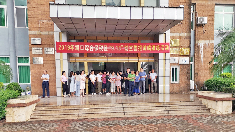 為增強駐區企業員工的國防觀念和防空意識,了解和識別防空警報信號,掌握防空襲疏散隱蔽知識,??诰C合保稅區聯合我司開展九一八防空警報試鳴演練活動。此次活動由綜保區統一指揮,我司負責具體實施,社事局局長黎晨主持,財政局局長王振武、園管局局長馬慶禮、原紀檢監察室主任李軍、社事局副局長李建玲、經發局副局長歐文、綜保倉儲物流公司、保安部、市中醫院等領導及相關部門負責人參加觀摩演練。